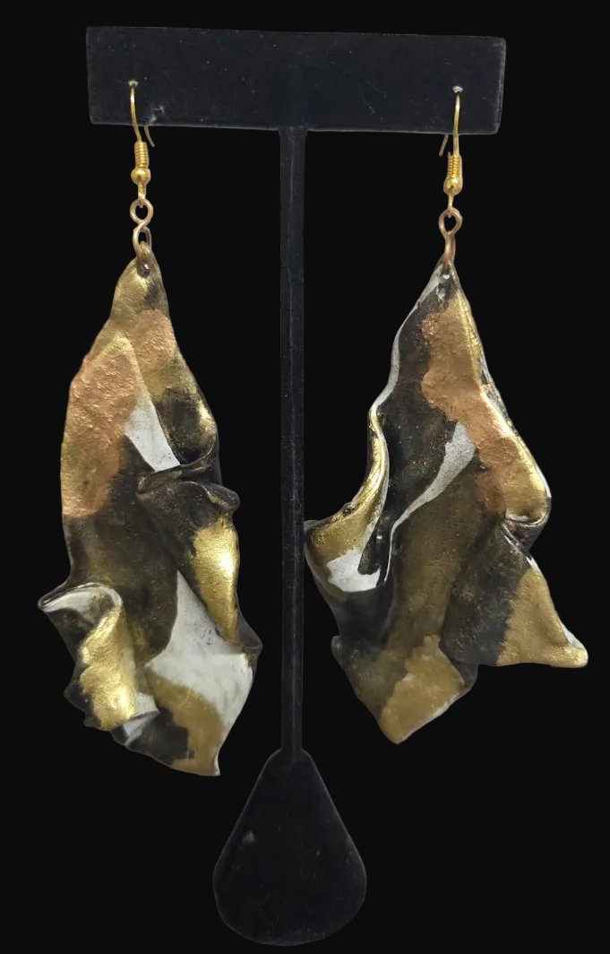 These 5-inch hand-sculpted resin-clay earrings began as an experiment — and transformed into controlled combustion.