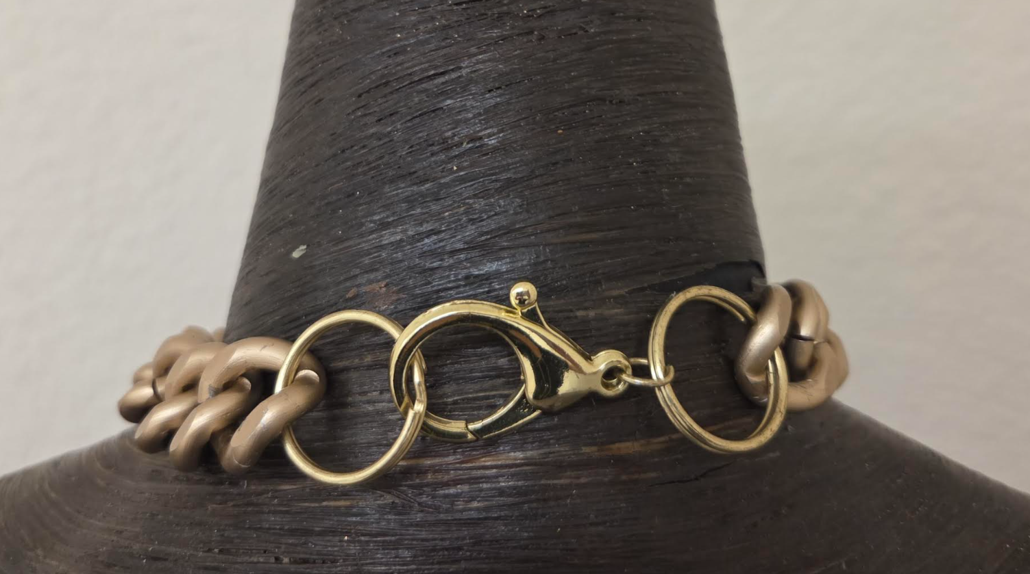 Suspended from a bold, warm-gold statement chain with smooth matte finish and oversized lobster clasp, this piece is a tactile marvel — part relic, part regalia. At once primal and luxuriously refined, it’s made to adorn visionaries, alchemists, and the sartorially fearless.