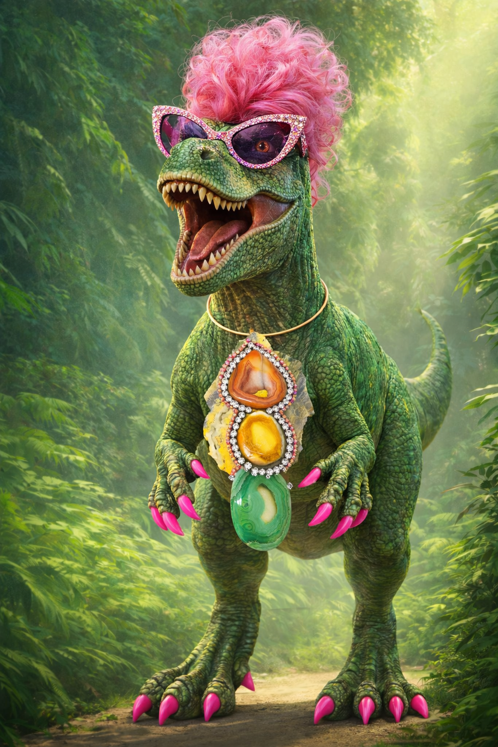 Here's another piece from my private vault, which is both new and unworn. I encourage you to research the price of grade A bumble bee jasper slabs to see the price points. Slabs of this grade and size (7" x 5") go for hundreds of dollars, and the supply in Indonesia, is nearing depletion, as this can only be found in one place in the world. I embellished this slab with three druzy agates (green, orange-yellow and orange-brown-caramel) then bejeweled it with two strands of rhinestones (one silver and one aurora borealis red). The size of the pendant, including the agates is 9" x 5" and the pendant does have some weight). If you prefer another type of collar, torc or necklace, you can easily change this out by unscrewing the metal balls on the back and adding your own neckpiece. I added a gold tone chain and lobster claw clasp for added security. This stunning OOAK Wearable Art piece is from the Atelier of Kat Kouture.