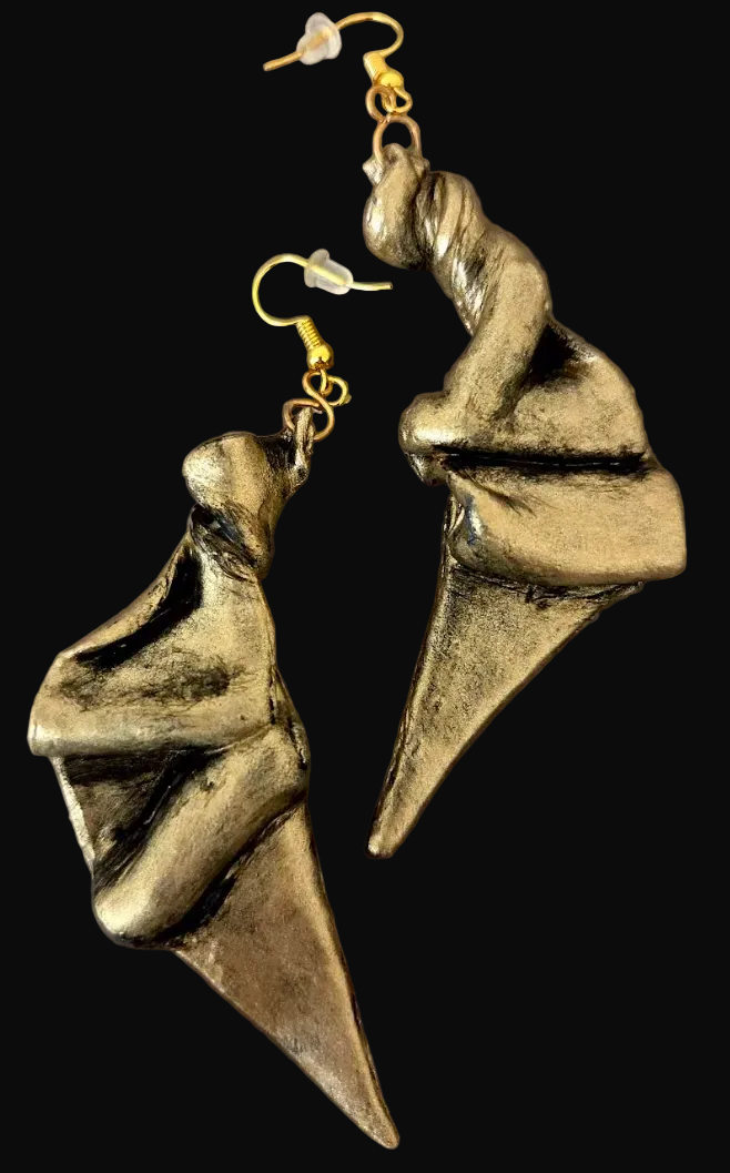 The Design: Measuring 4.5" x 1.5", these relics are finished in a weathered, burnished champagne-gold that highlights the deep shadows within the spiral folds. Despite their substantial sculptural volume, they maintain the Weightless Architecture necessary for all-day comfort. They are finished with gold-tone ear wires and secure silicone backings to ensure they remain a permanent part of your personal sanctuary.