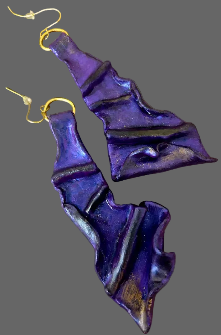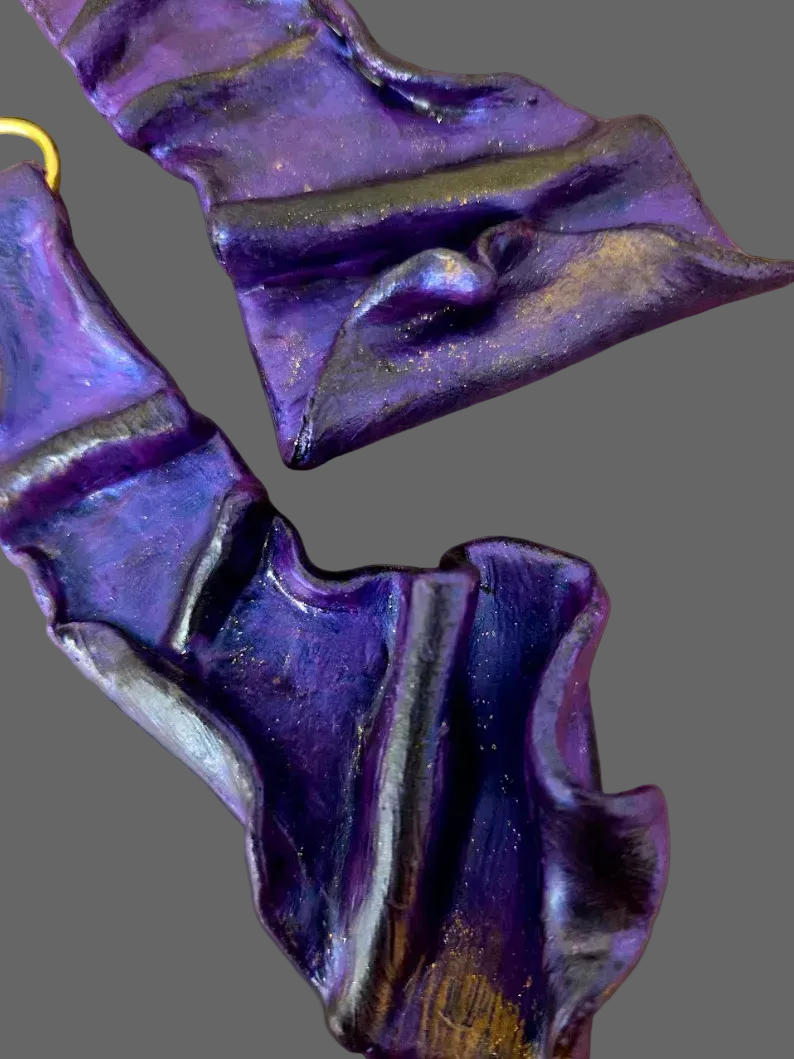 Metallic Purple Hand Sculpted & Draped Shoulder Duster Earrings