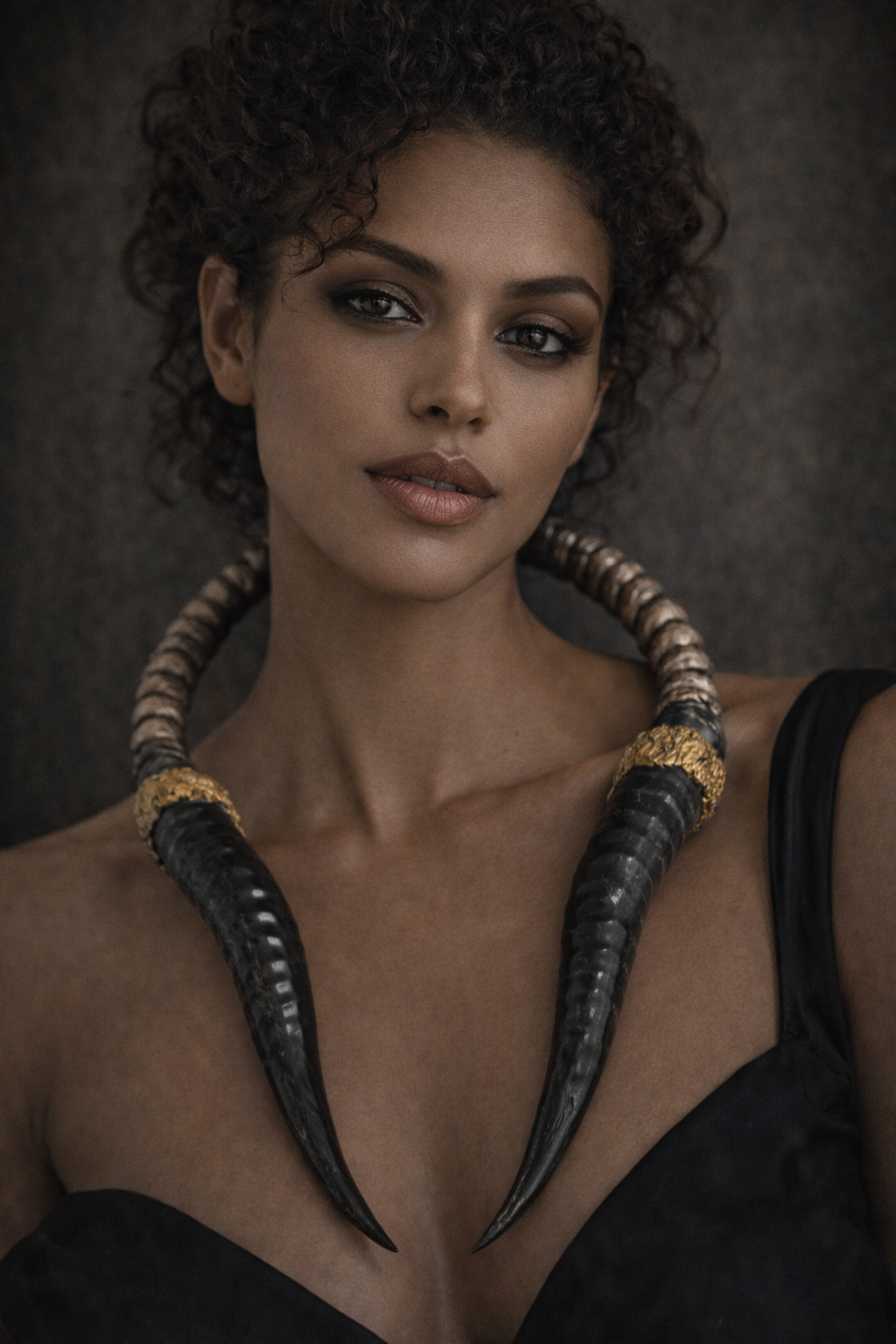 This piece looks like it was excavated from the ruins of a civilization that never bothered with modesty or mortality. The polished horns don’t curve; they loom, as if they’re listening for something ancient. They point forward like they’re ready to challenge the next god who steps out of line.