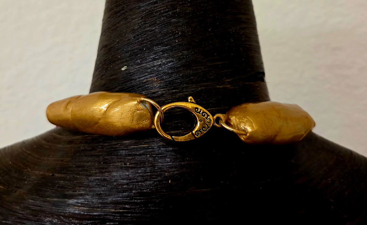 9" Drop per Side - Finished with Sculpted End Caps and a XL gold tone lobster claw clasp