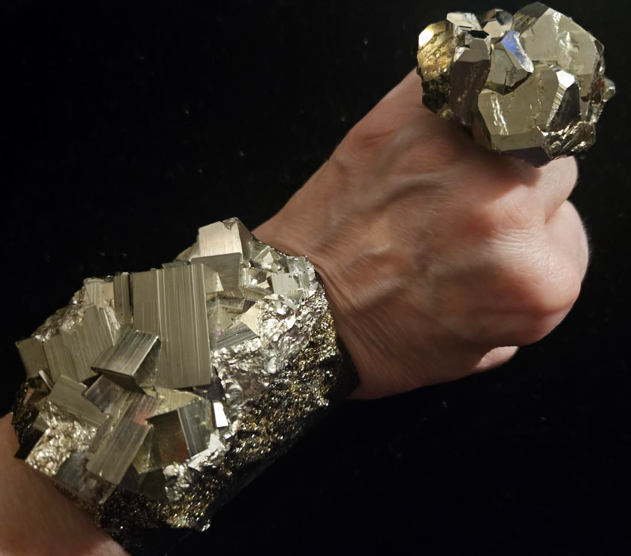 Raw pyrite cluster cuff, hand-sculpted on a firm base