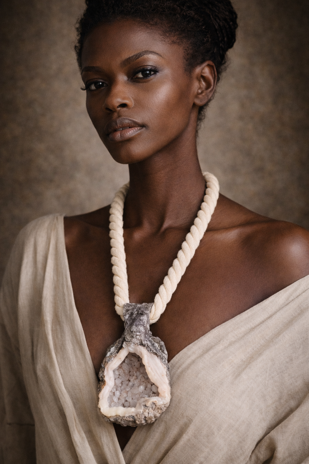 Sculpted Geode Gemstone Pendant With Thick Rope - Crystal Cave