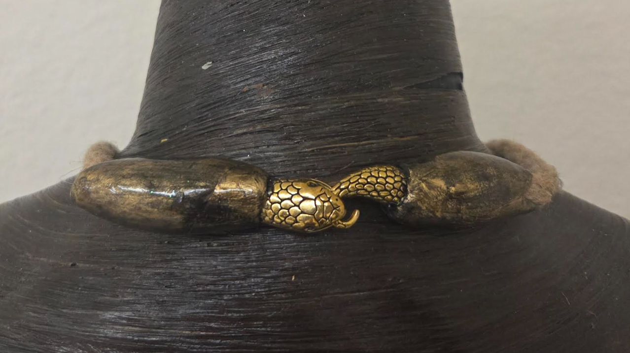 Ornate double-snake clasp in antique gold tone