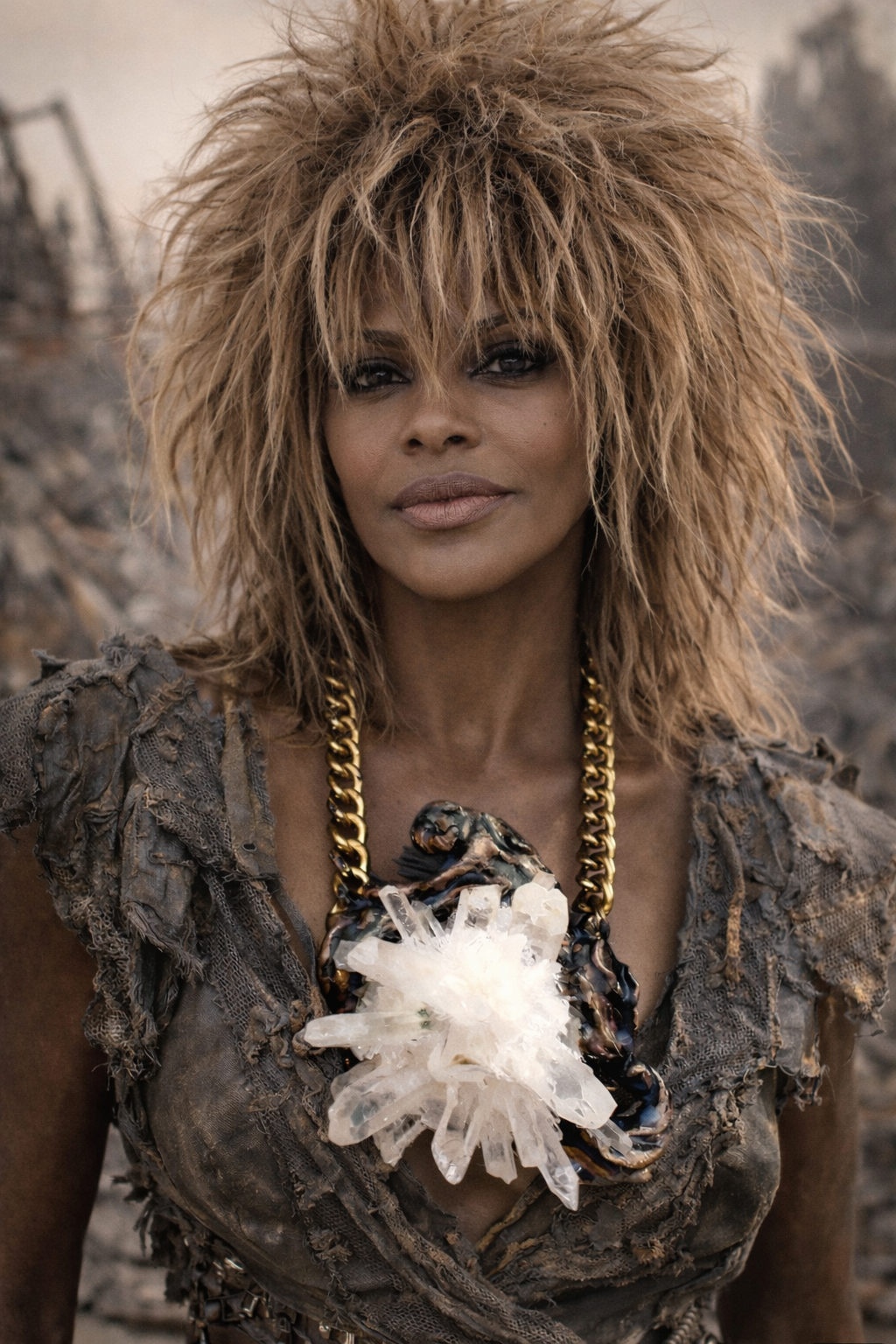 This elegant unisex white quartz statement pendant is quite rich as well as versatile. It wears equally well on either men or woman. I used a massive white flower quartz as the focal point and set it into hand sculpted material which I painted to resemble weathered metal. The OOAK Art to Wear Avant Garde Pendant measures 6" x 4.5" and will rest comfortably upon your breastbone. Two warm brass bold chains support the piece and measure 18". This can be adjusted shorter if needed. Closes with an xl brass lobster claw clasp. A bold, heavy androgynous gemstone couture pendant from the Atelier of Kat Kouture.